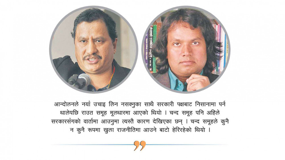 राजनीतिक माग र एजेन्डा बोकेर हिँडेका राजनीतिक शक्तिहरूको मुख्य बल भनेको जनताको समर्थन हो । ती एजेन्डालाई जनताले समर्थन गरेनन् भने उनीहरूको शक्ति क्षीण हुँदै जान्छ । चन्द समूह र राउतका हकमा त्यस्तै स्थिति आइपरेको हुन सक्ने विश्लेषक तुलानारायण साहको बुझाइ छ । ‘क्षति बढी हुन्छ कि भन्ने विश्लेषण भएको हुन सक्छ, जनसमर्थन नपाएको पनि हुन सक्छ,’ उनले भने, ‘यो अवस्थामा राज्यले आफ्नो नेगोसिएसन स्किल राम्रो देखाएको हुन सक्छ ।’